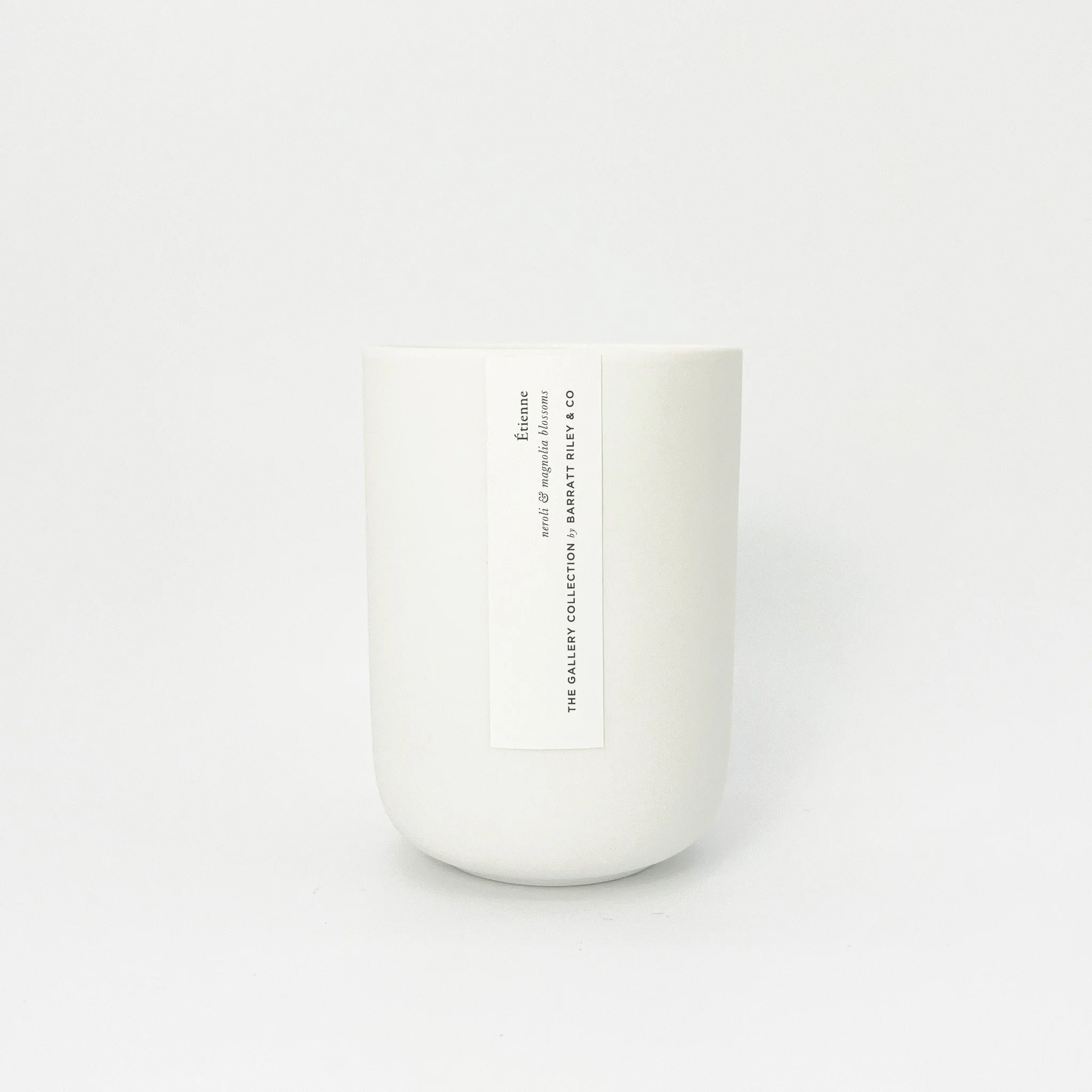 All-natural, sustainable coconut wax infused with notes of amber, jasmine, lavender, coriander, patchouli, black pepper, cedarwood, adriatic fig, and vanilla.